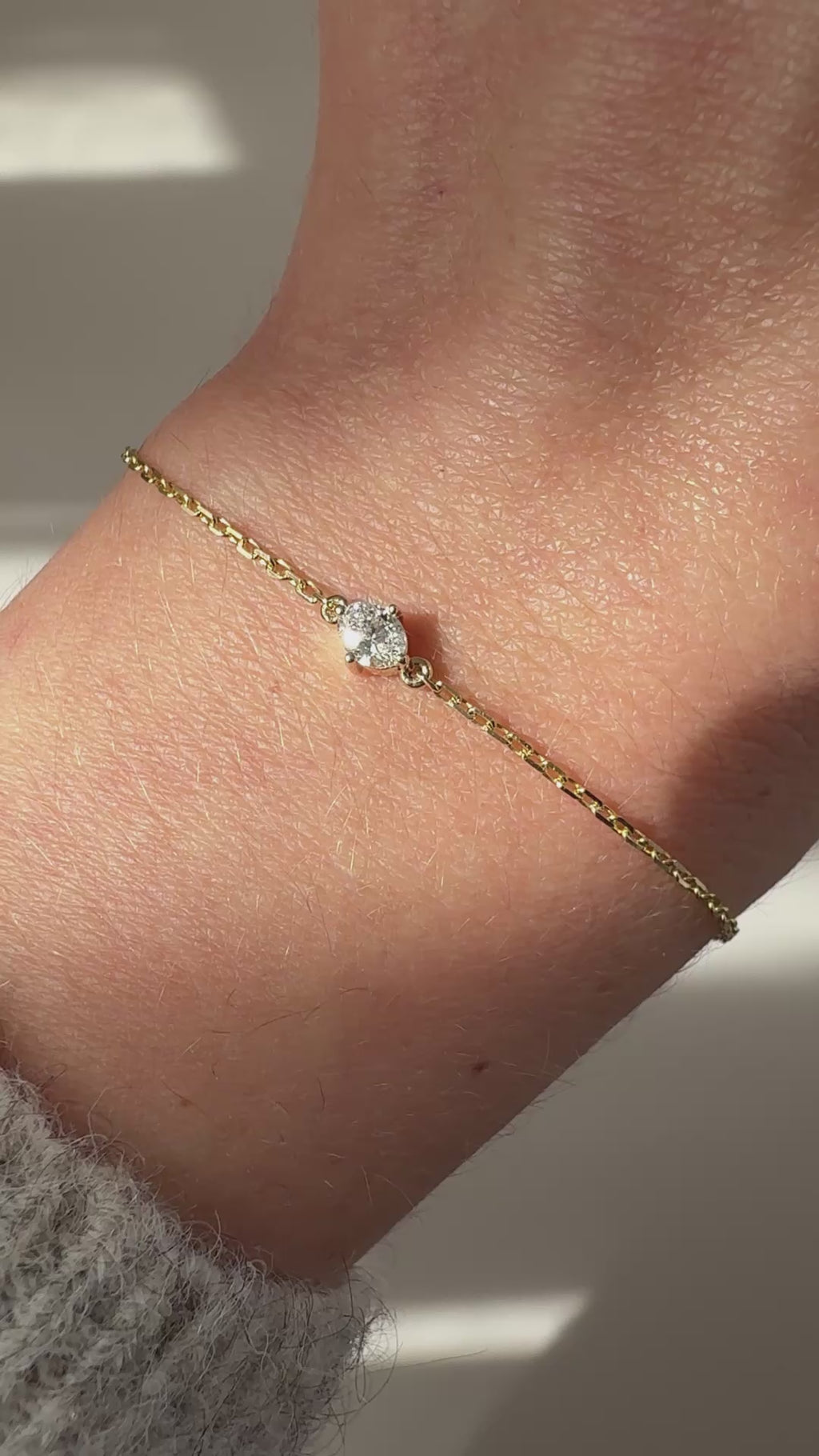 Elevate your everyday style with this beautiful oval diamond bracelet. The design features a 0.25ct H VS-SI oval diamond, securely set in a classic four claw setting, suspended from a fine, solid 9ct gold chain. This piece is perfect for everyday wear, and we recommend layering this with our Florence Bracelet.