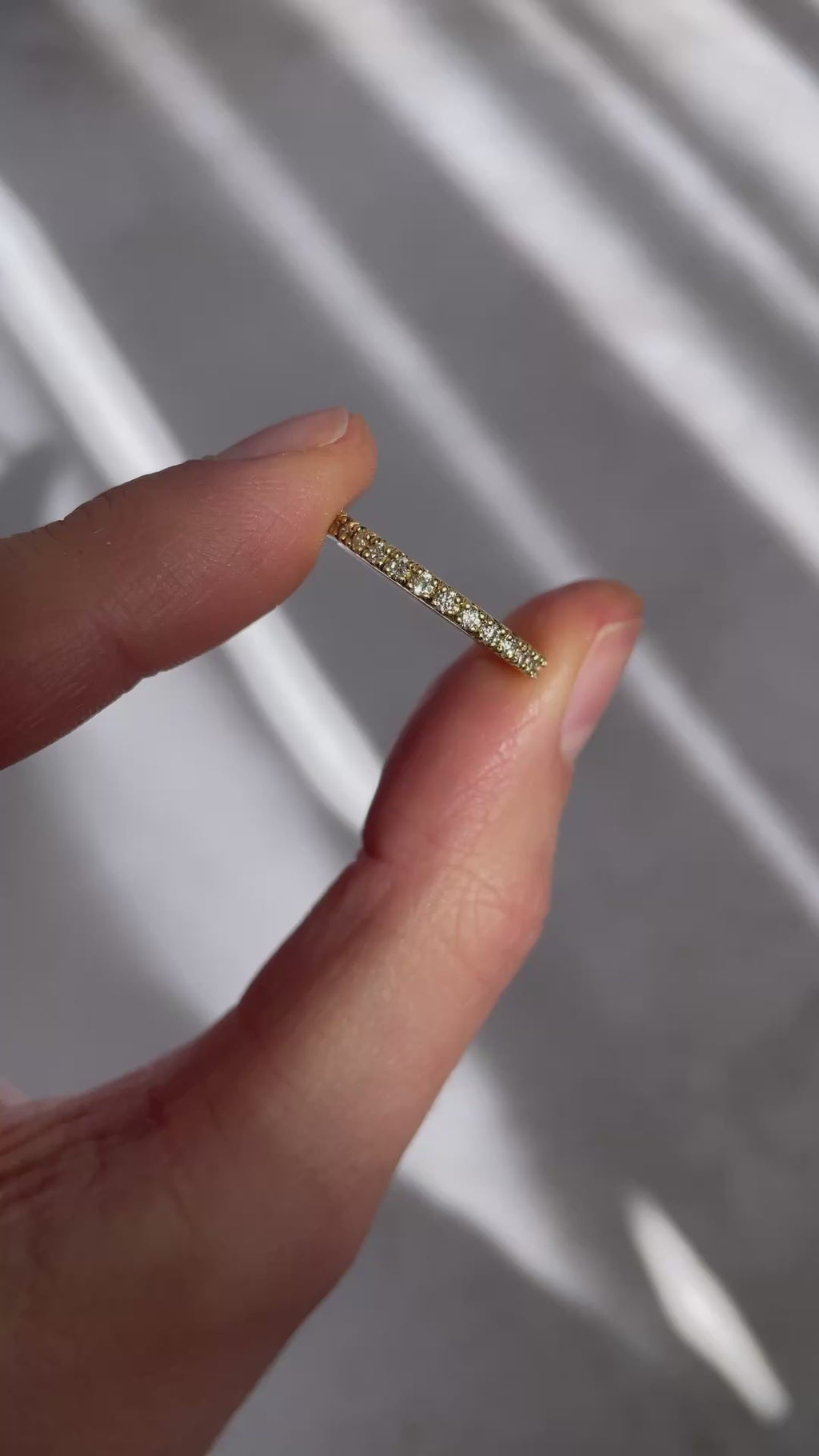 The Diamond Starlight Ring is a celebration of delicate sparkle and timeless design. A row of 1.7mm (+- 0.02ct) round diamonds are meticulously set in a classic claw setting, creating a ring that's both refined and versatile. Wear it as a wedding band, or stack it with The Daily Eternity Band for a contemporary twist.