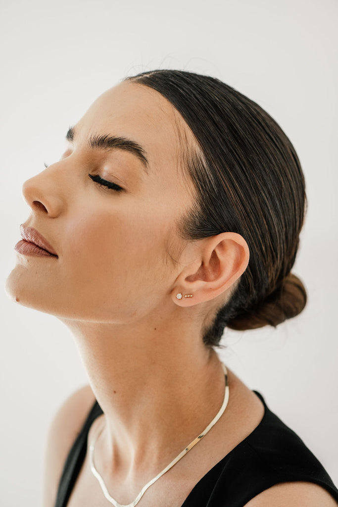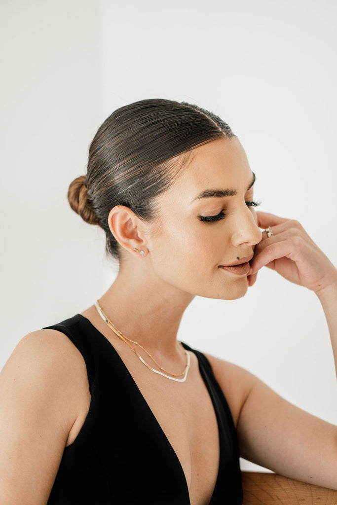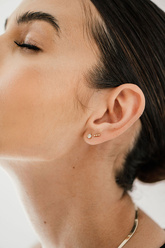 Image: 18ct yellow gold with IJ colour diamonds paired with the Gold Beaded Studs and Baguette Diamond Studs.